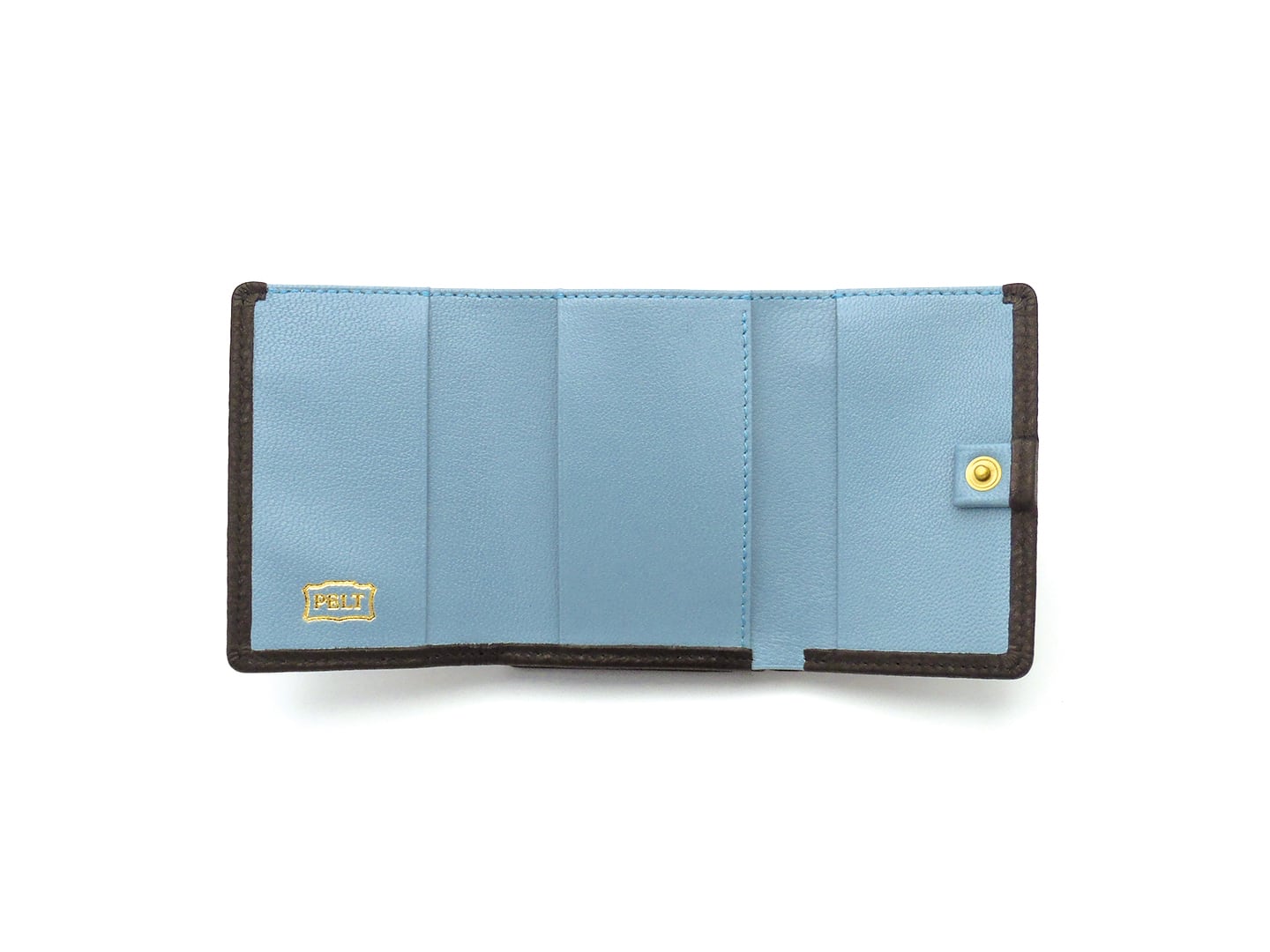 コンパクトな三つ折り財布。カードポケットは小銭れの下にもあり、5ヶ所の収納。