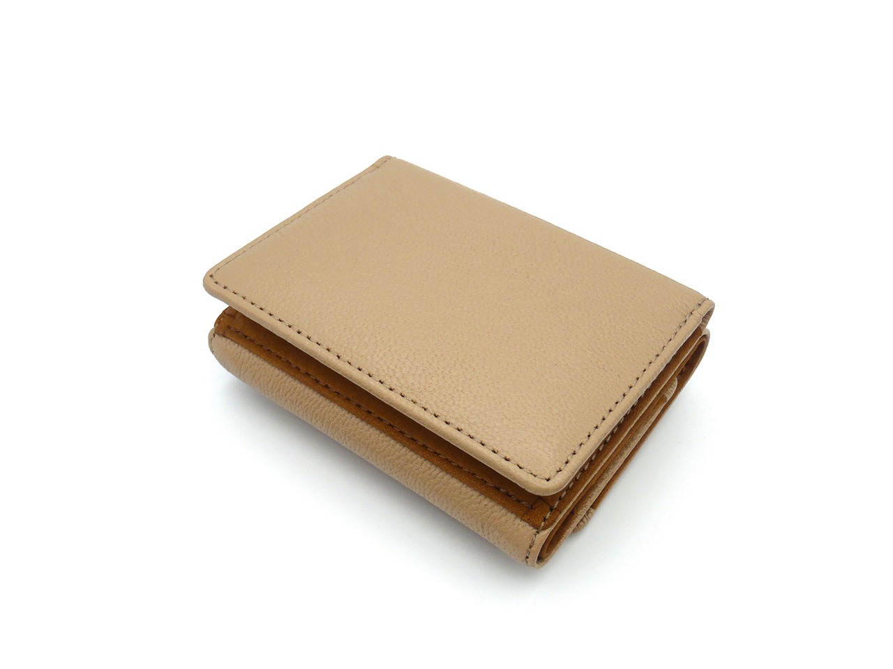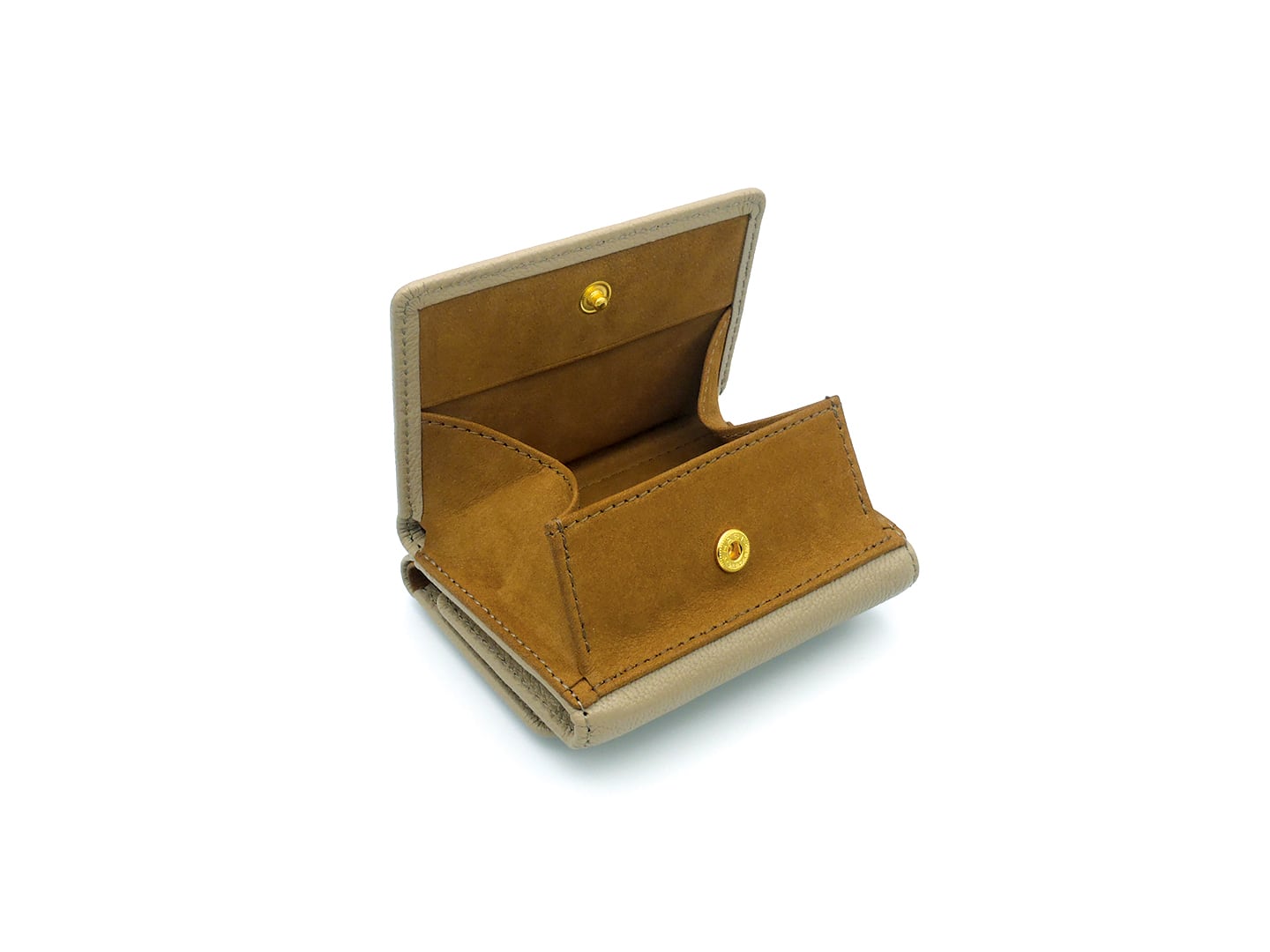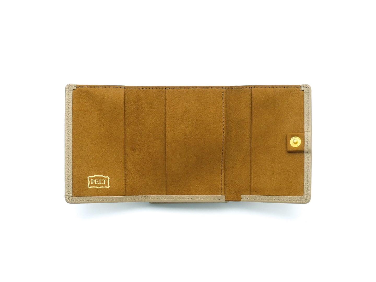 コンパクトな三つ折り財布。カードポケットは小銭れの下にもあり、5ヶ所の収納。