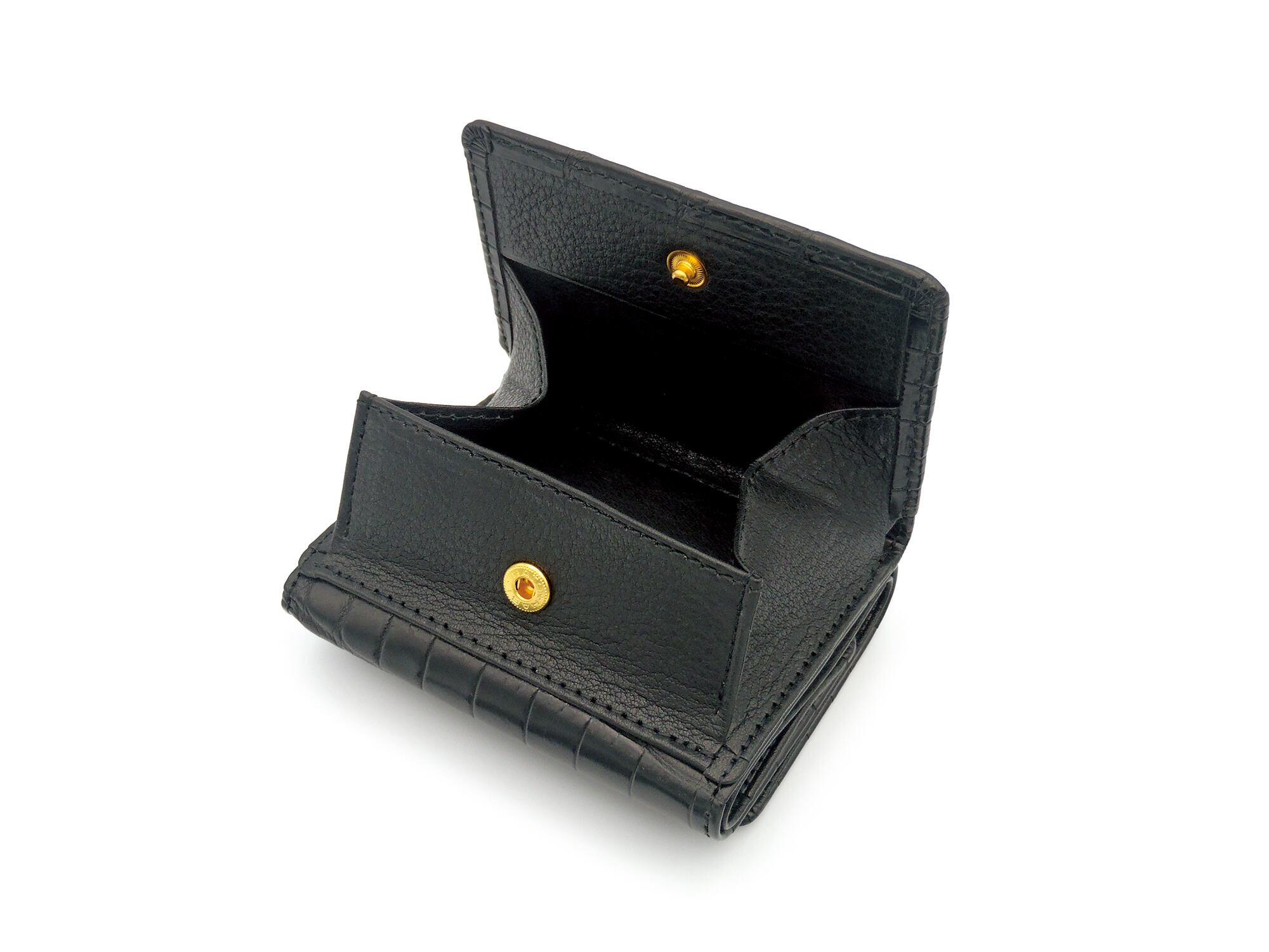 コンパクトな三つ折り財布。カードポケットは小銭れの下にもあり、5ヶ所の収納。