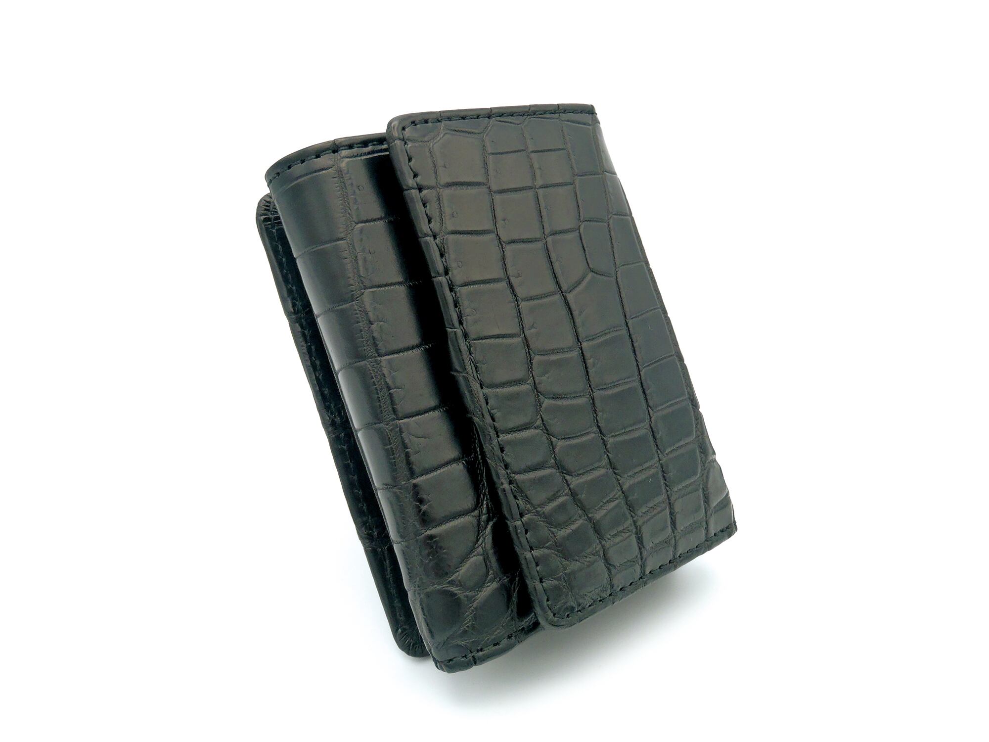 ウロコ模様が美しく、堅牢なクロコダイル革。野性味溢れる革でありながら上品さも感じさせます。内側には型押しではない革そのものの自然な肌模様が美しい牛革。シンプルに同色で合わせ、互いに素材の魅力が引き立ちます。