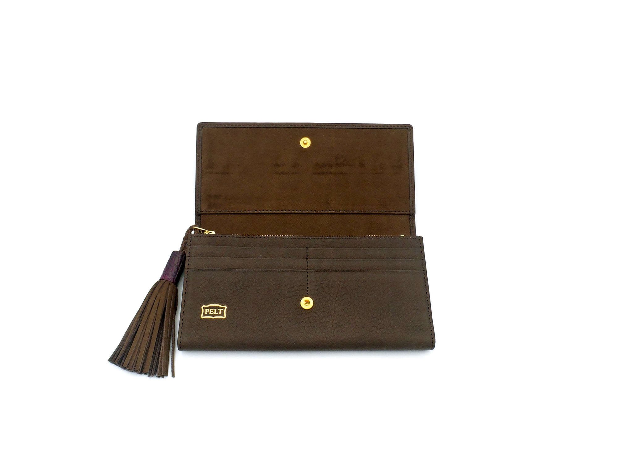 ベーシックな長財布。片側に付いたマチで大きく開く小銭入れ。