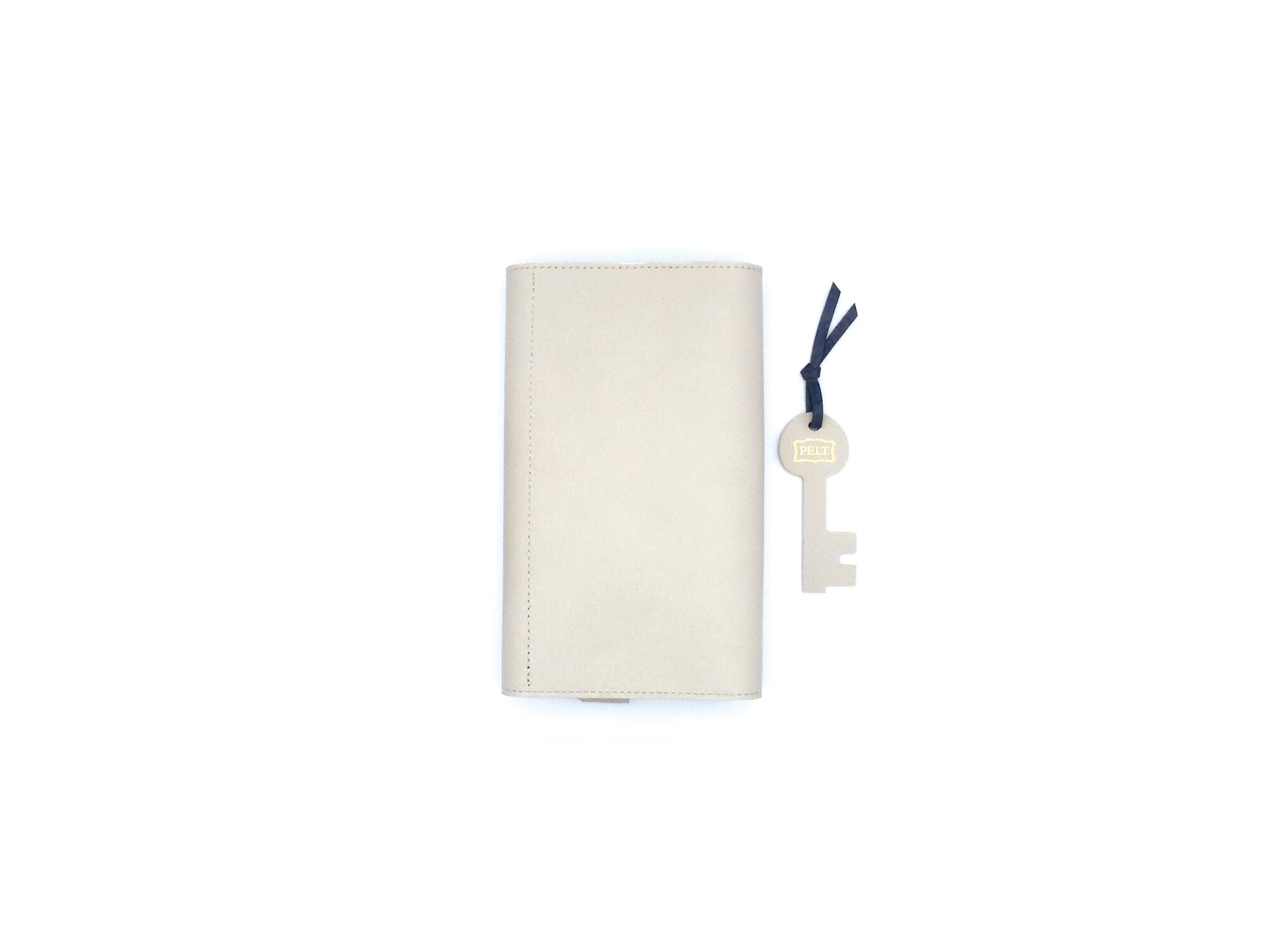 たっぷり大きく一枚革を使って作ったブックカバー。本が開かないようフラップで閉じておくことができるので、バッグの中で他の荷物が本を傷める心配がありません。通常の文庫から新書まで入るサイズで、フラップを差し込むベルト部分の折り返し位置を本に合わせて変えれば厚い本でも薄い本でもぴったりと収まります。カギの形のブックマーク付き。