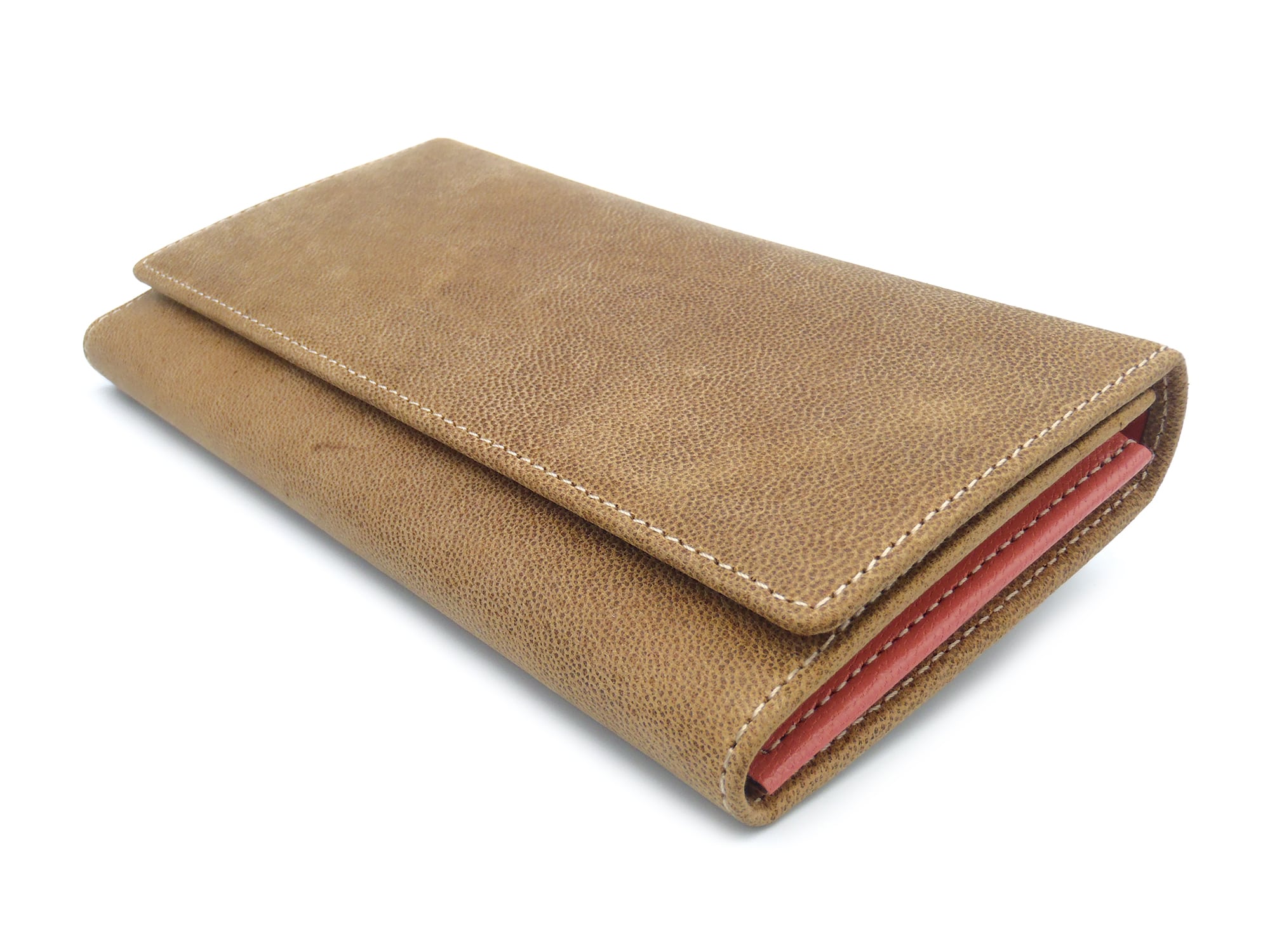 日本のタンナーで鞣されたサウジアラビア産ヒトコブラクダ。ややマットな質感ですが、使い込むほど表面はなめらかに、色も濃くなります。