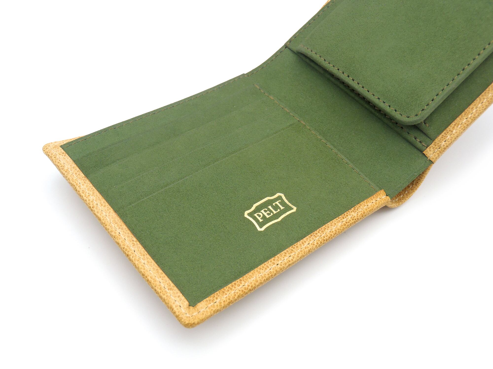 二つ折り財布 ラクダ革,牛ヌバック/フォレストグリーン